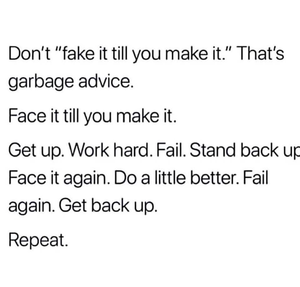 I ask you, when has faking something ever brought about the real thing for you? Why did anyone think faking something like confidence would actually cultivate confidence, inspiration or anything else?