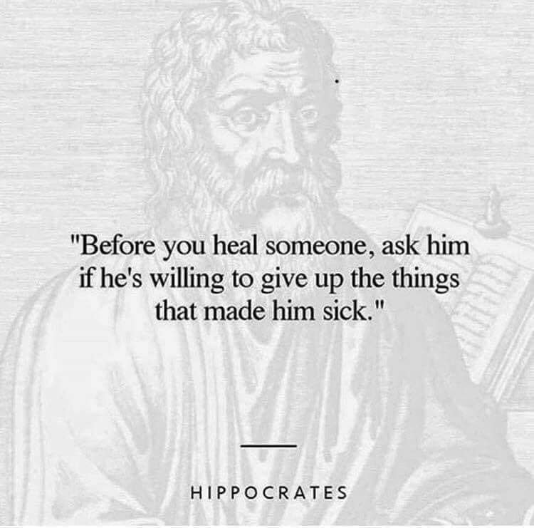 I love Hippocrates’ quote above and I think it can be applied to the healer as well. “Before you heal someone, you need to be willing to give up the things that make you sick.”